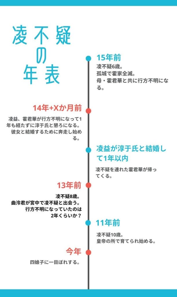 まず、孤城で霍家が全滅したのが15年前、凌不疑が6歳の時です。